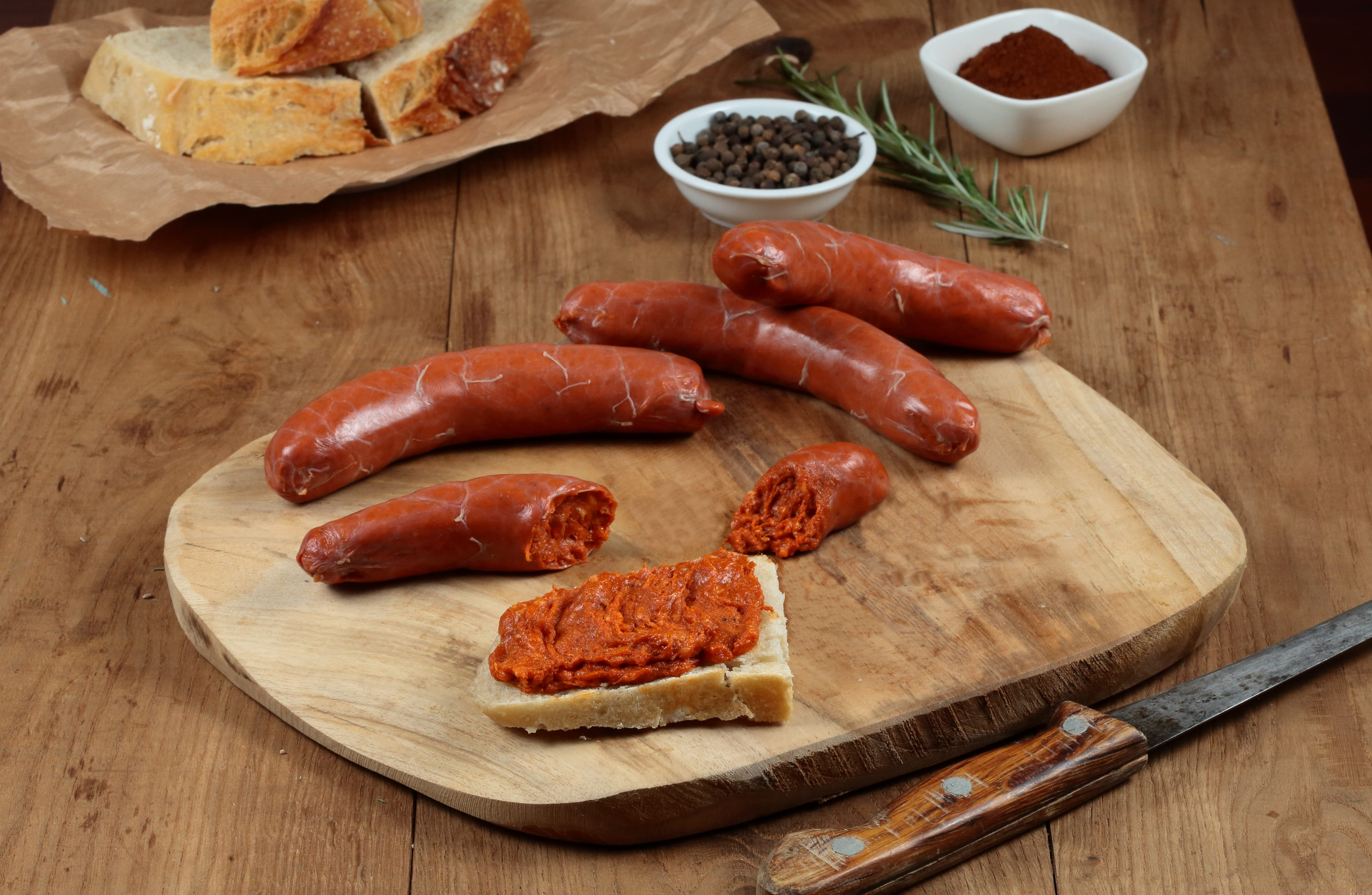 Cansalada ECO i magre ECO de porc ECO de l'Empordà, pebre vermell, sal, pebre negre, sucre, caiena, Antioxidant E-301. Tripa natural.